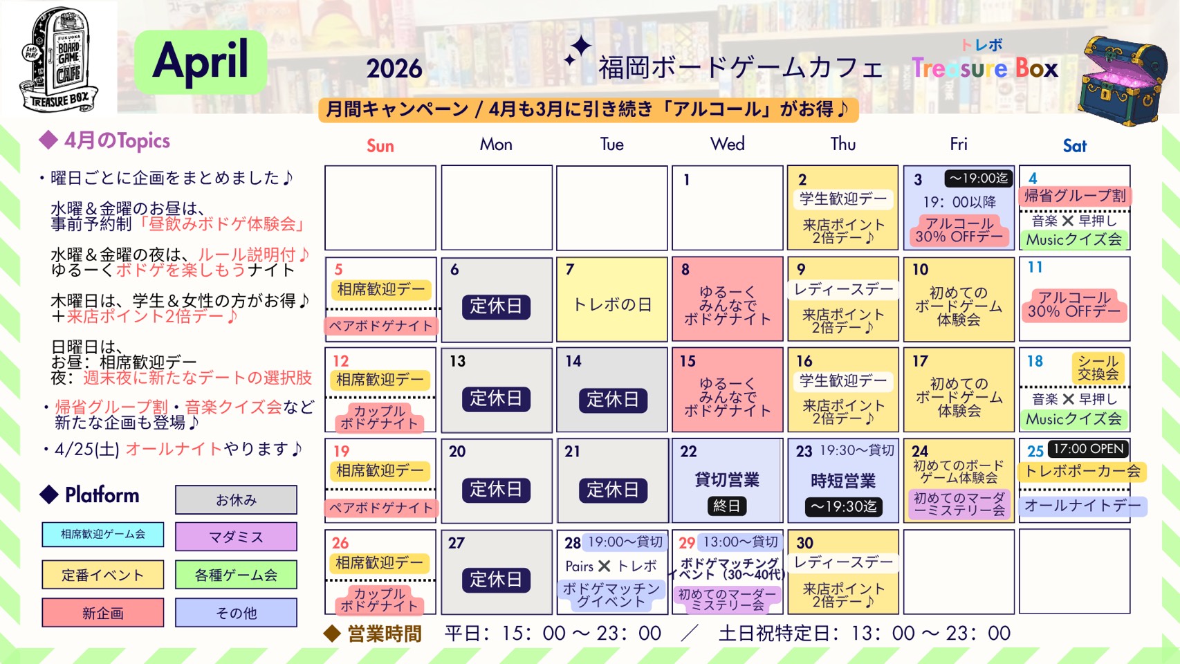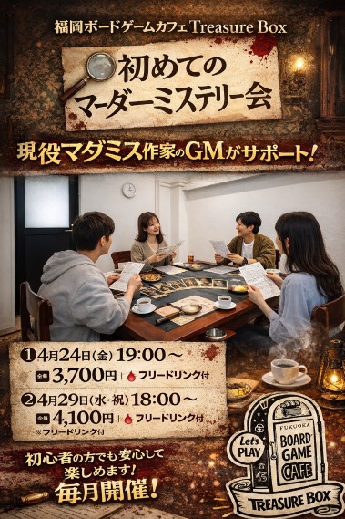 福岡ボードゲームカフェ トレジャーボックス ( トレボ ) です。