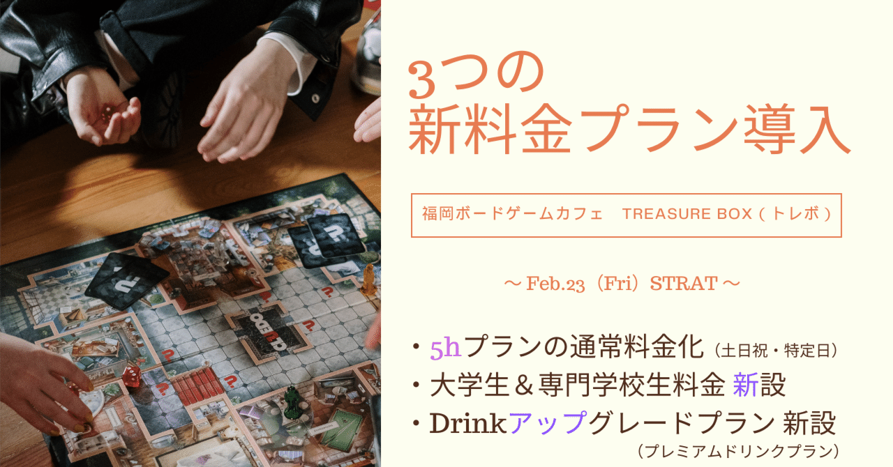No,97_新料金プラン導入のご案内📝🪙|福岡ボードゲームカフェ Treasure Box